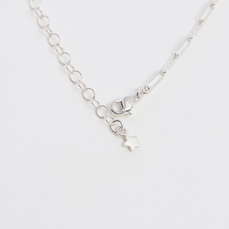 ★こちらのチェーンはアジャスター以外のメインチェーンのコマにも金具を留めることができます。短くしようと思えばどこまでも短くすることができる構造になっています。
