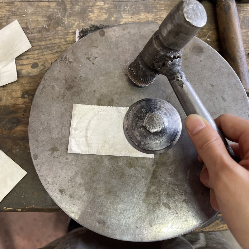 形になるまでに気の遠くなるような工程を経て仕上がりをむかえます。シルバーを溶かし、塊にし、それを薄く引き伸ばし、シルバーシートになった状態からモチーフを糸ノコで1つずつ切り、1つ1つヤスリをかけ、溶接を繰り返し、幾度も磨きをかけて形成する工程です。作り手の中でたくさんの時間を費やし、持ってくれる人がうれしく思ってもらえるようにデザインをおこし、気持ちをこめて製作をしています。1点1点違う「1点ものの仕上がり」を、手作業の跡が残る美しさでお届けしています。