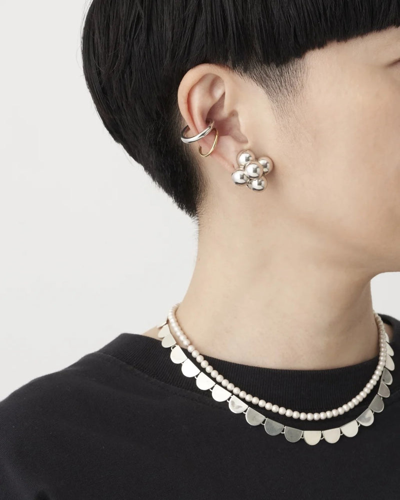 形になるまでに気の遠くなるような工程を経て仕上がりをむかえます。シルバーを溶かし、塊にし、それを薄く引き伸ばし、シルバーシートになった状態からモチーフを糸ノコで1つずつ切り、1つ1つヤスリをかけ、溶接を繰り返し、幾度も磨きをかけて形成する工程です。作り手の中でたくさんの時間を費やし、持ってくれる人がうれしく思ってもらえるようにデザインをおこし、気持ちをこめて製作をしています。1点1点違う「1点ものの仕上がり」を、手作業の跡が残る美しさでお届けしています。
